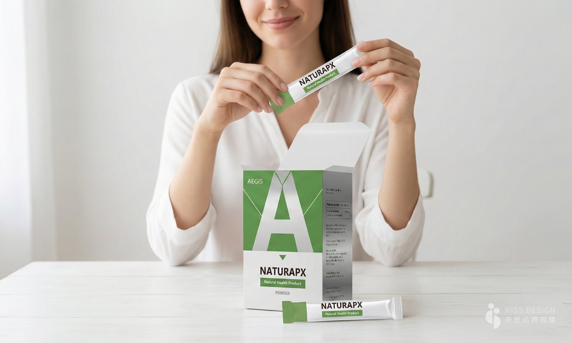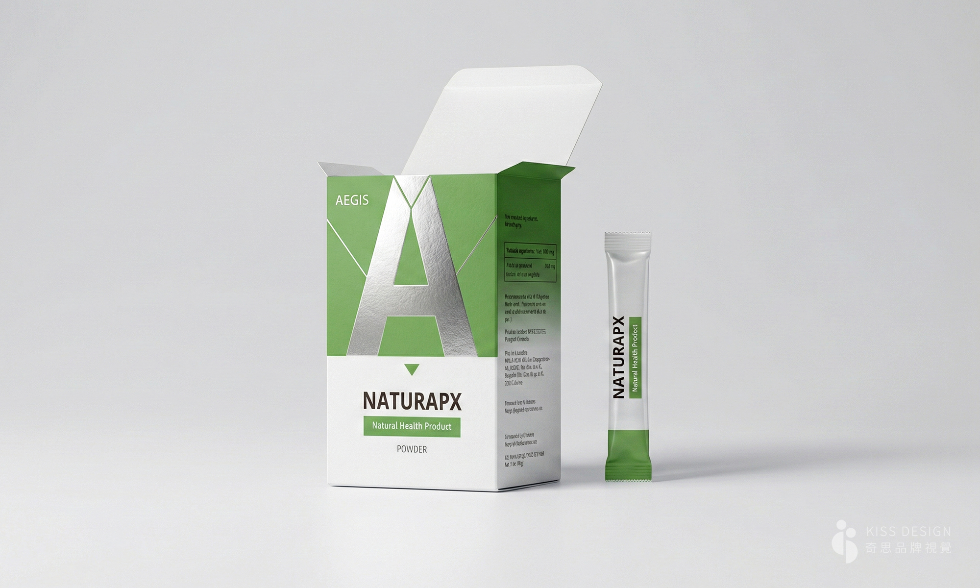 AEGIS-產品包裝設計,保健產品包裝,使用綠色與健康的印象串聯,搭配霧銀色讓包裝質感升級,呈現專業俐落的包裝設計風格