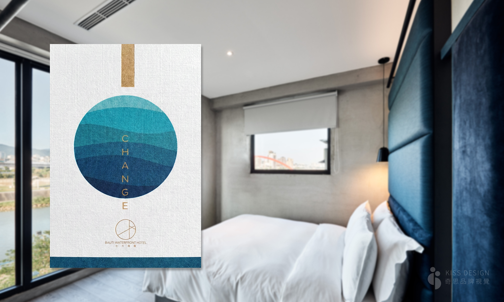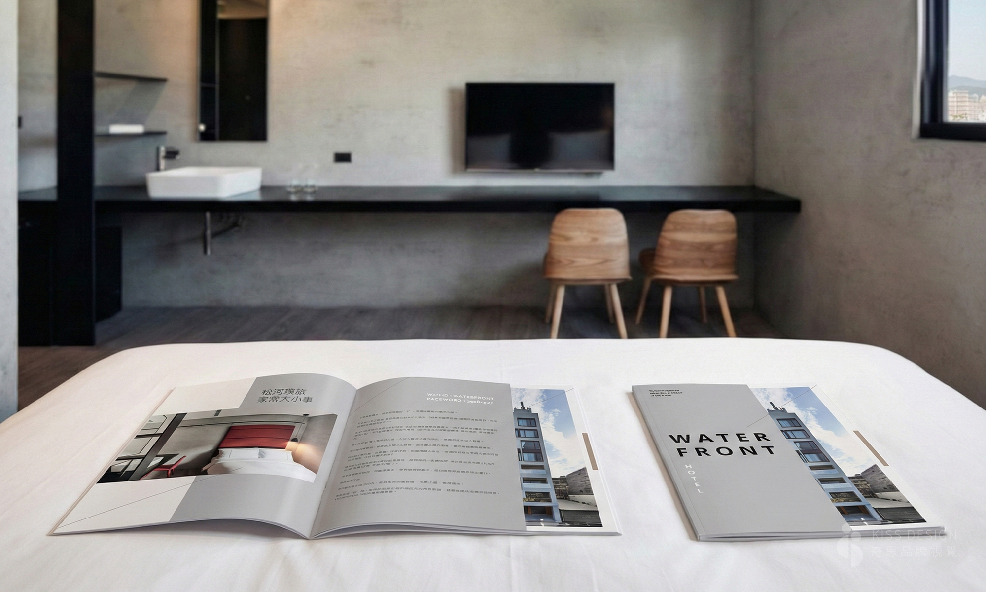 松河璞旅-視覺設計,簡約幾何現代風格的品牌視覺設計 ,包含飯店手冊、清洗牌、卡片、活動視覺設計